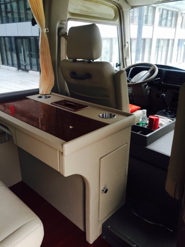 路景考斯特 車子新 車況好 帶皮座套 木地板 工作臺(tái) 液晶電視 師傅熱情 服務(wù)周到 成都租車,就來(lái)路景租車,我們?yōu)槟鷾?zhǔn)備了多種車輛,從5人到55人一應(yīng)俱全