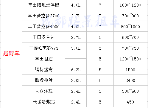 以上是小編提供的川藏越野車價格一覽表可供參考,具體的成都租越野車價格多少?預定車輛還需提前致電了解清楚。淡旺季會有相應調整,這個季節(jié)租越野車是很有必要的,越野車不必其他小轎車,他自身的動力比較足,車型外觀設計比較闊氣,底盤也較高行駛早川藏線上就是一道靚麗的風景線,針對奇險的路段也是一踏平川。